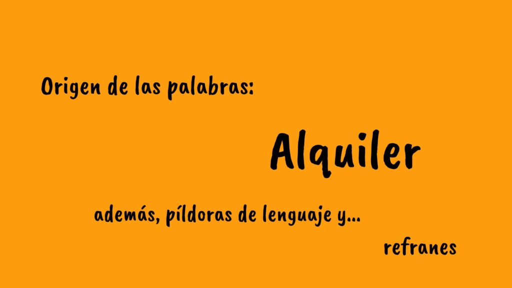La palabra alquiler proviene del árabe hispánico alkirá  o alkirí, que a su vez se formaron a partir del árabe clásico kirā ‘alquiler’, del verbo kârā ‘alquilar’. En portugués, se prefirió el verbo alugar ‘alquilar’ y el sustantivo aluguel ‘alquiler’, tomados del bajo latín allocare.